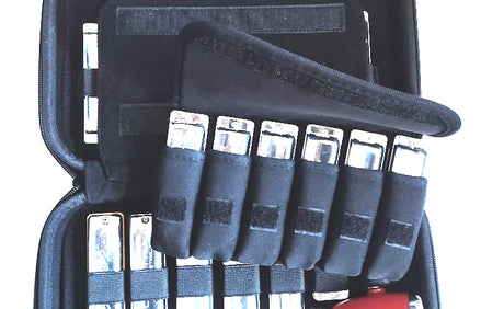 - If you only fill one "tier" and the middle pocket with a total of 13 instruments (7+6), there is enough space in the bottom tier for cables, microphones and tools (also suitable for bullet mics such as Green Bullet or Astatic).
