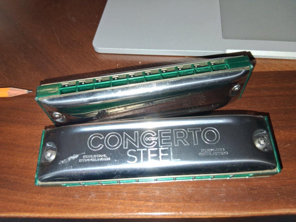 The CONCERTO STEEL is a high grade octave-tuned double-reed diatonic. The notes are aranged exactly like on a 10-hole diatonic (Richter tuning).
